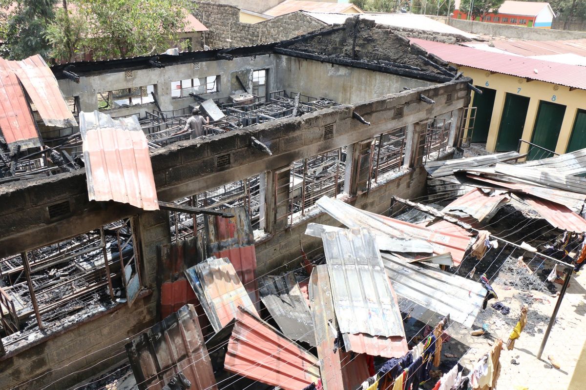 Remains of the beds that were burnt down after a fire broke out inside a dormitory at St Mary's primary school on February 16, 2025.