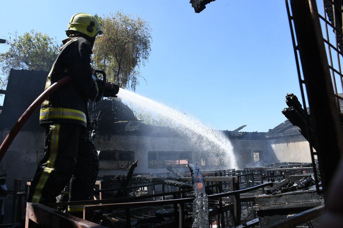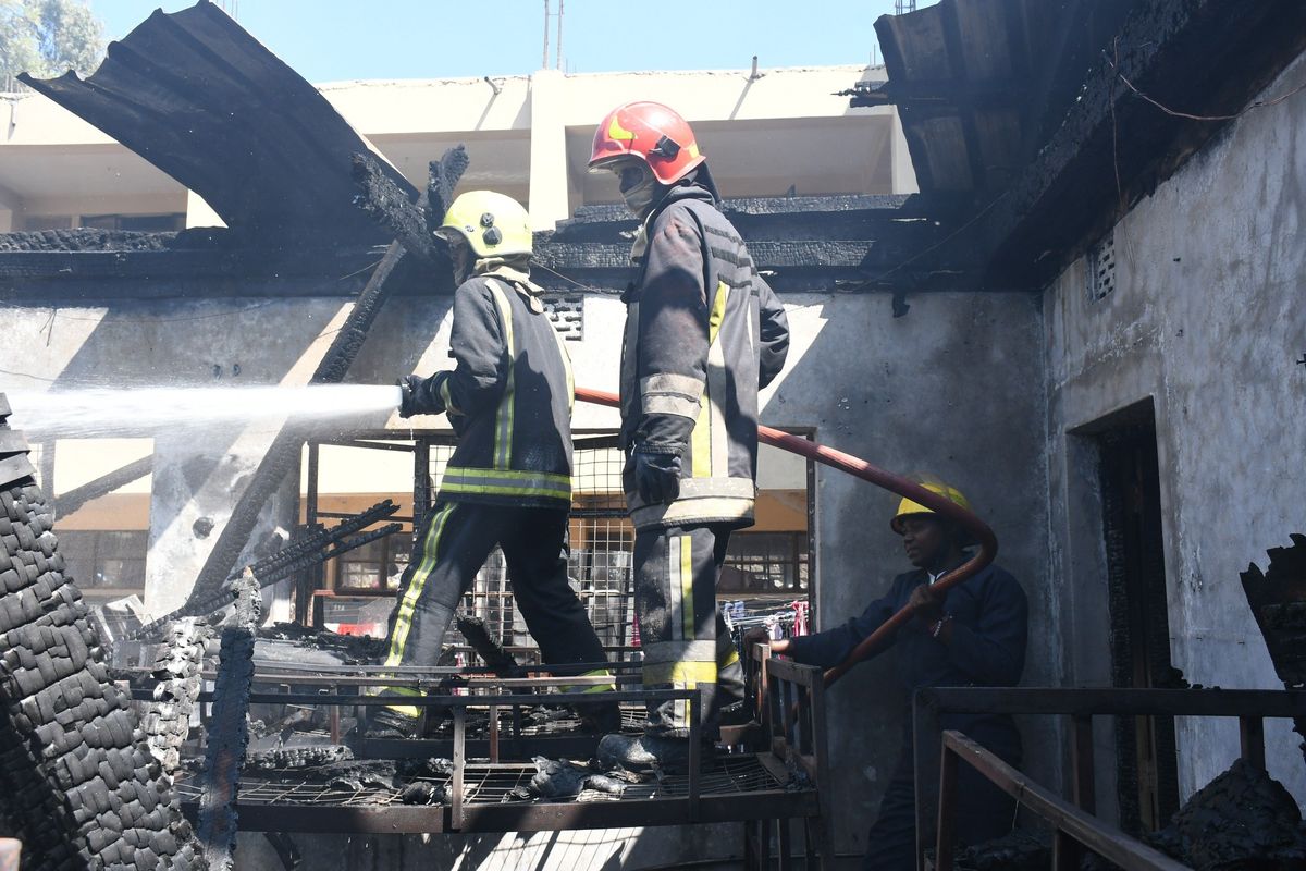 A fire fighter puts out fire that had broke out inside a dormitory at St Mary's primary school on February 16, 2025.