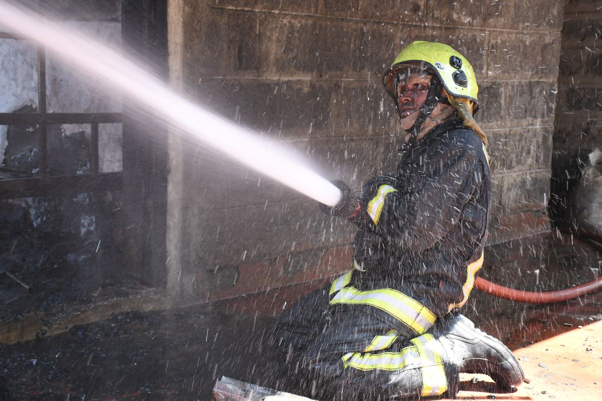 A fire fighter puts out fire that had broke out inside a dormitory in St Mary's Primary school on February 16, 2025.