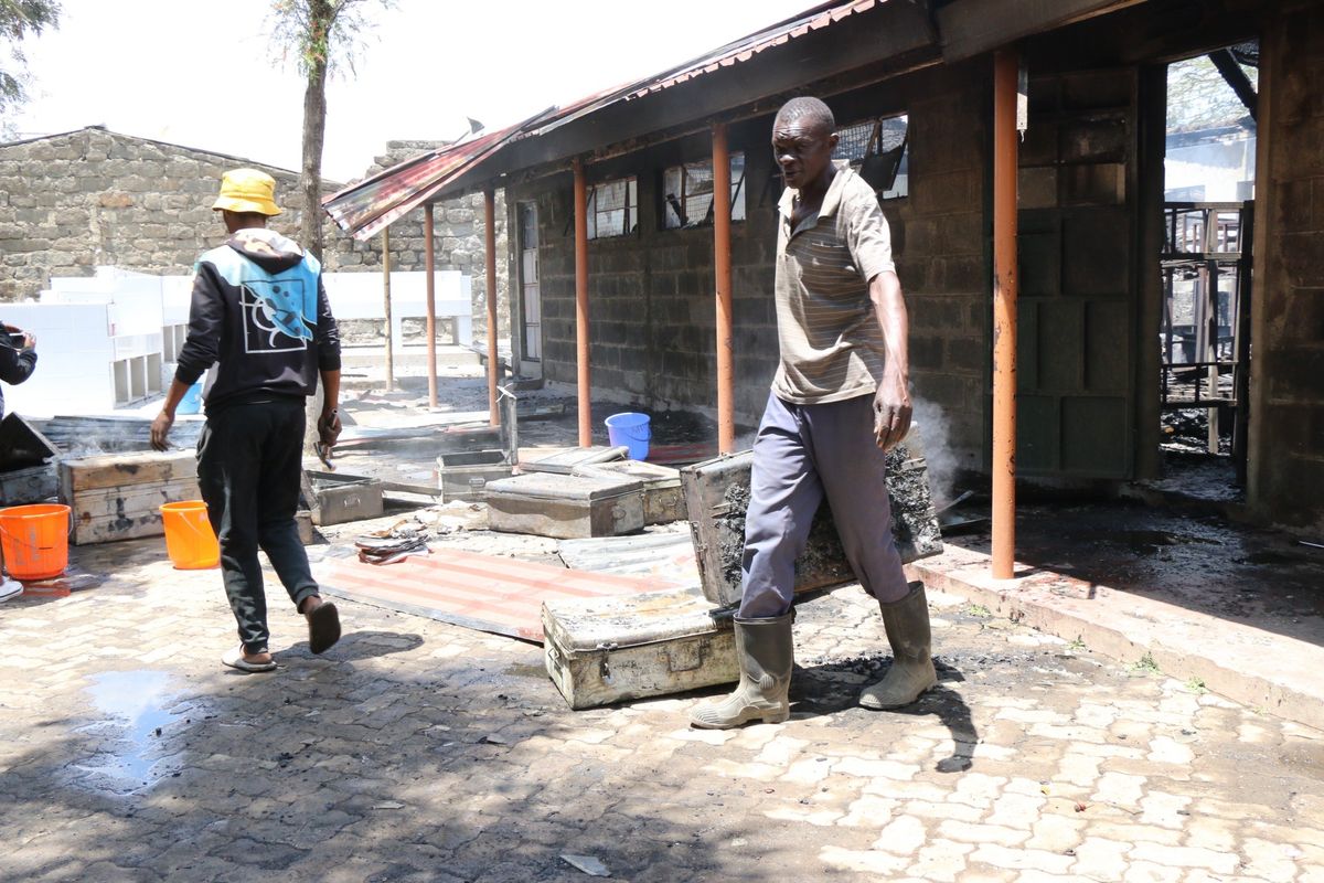 Some of the burnt boxes placed outside the dormitory at St Mary's primary school on February 16, 2025.