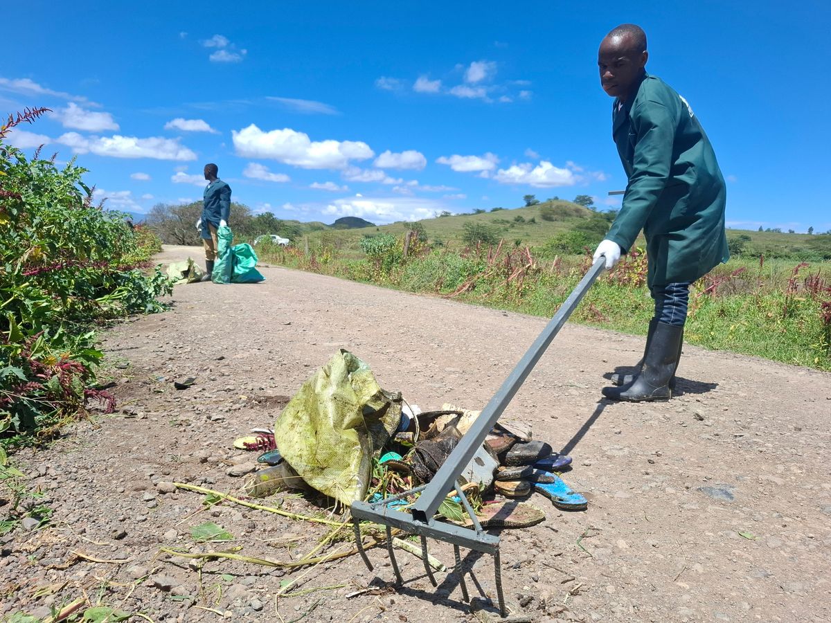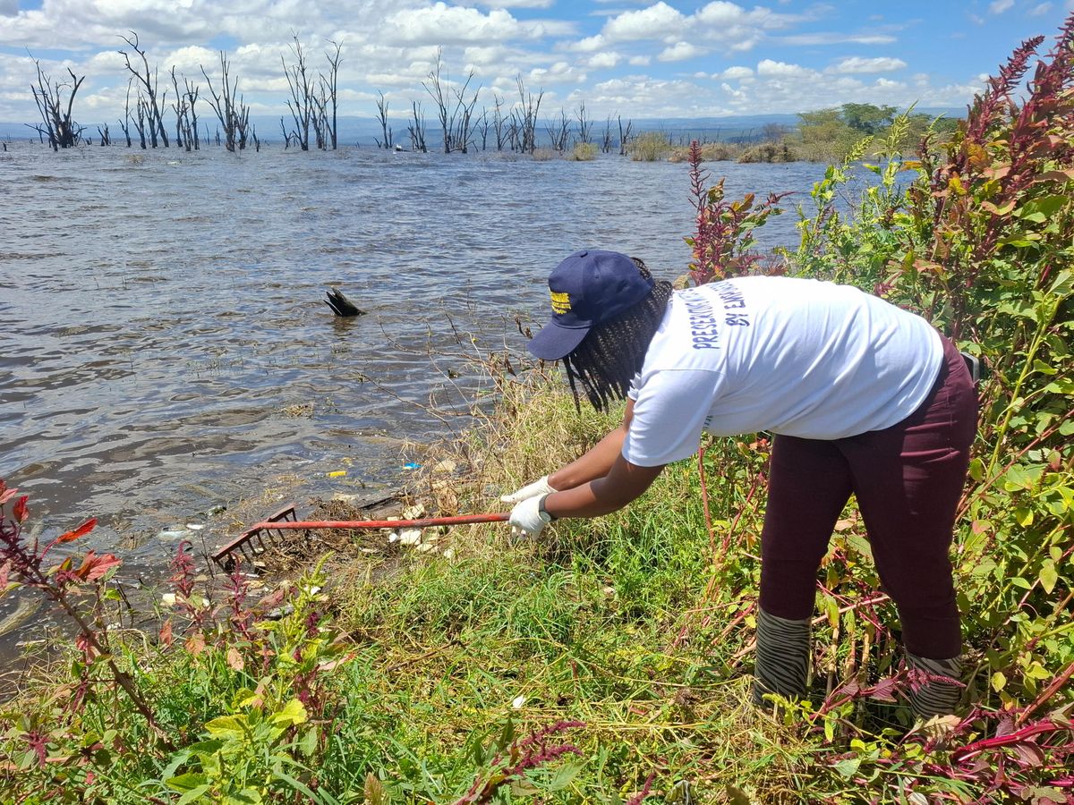 A member of the Barut Gameview Association (BGA) joins other environmentalists in the clean-up exercise at Lake Nakuru National Park on October 10, 2025 to commemorate Mazingira Day.