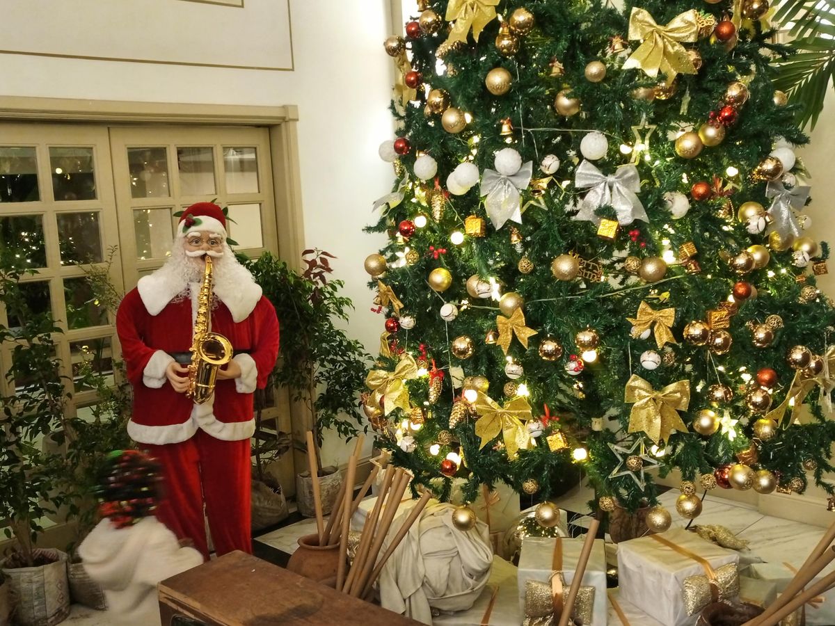 A beautifully decorated Christmas tree and Santa stand tall at the Sarova Woodlands hotel, welcoming guests in true festive style.