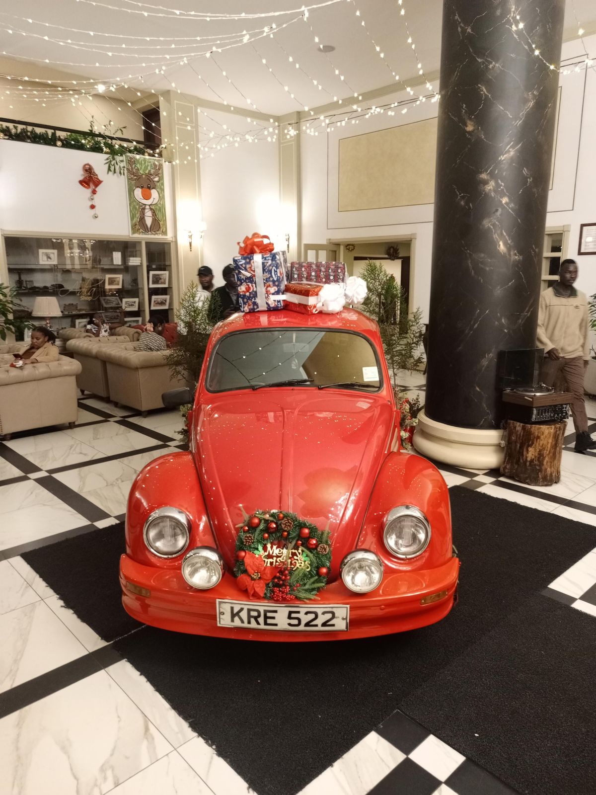 A red vintage car Christmas decoration sets the festive mood at the Sarova Woodland hotel.