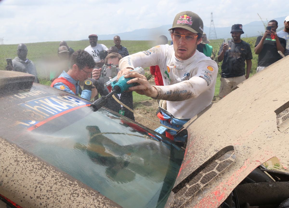 Thierry Neuville of Hyundai Shell Mobis World Rally Team cleans their car screen which were covered with mud after racing through Sleeping Warrior stage on Day Three of the 2026 World Rally Championship Safari Rally Kenya on March 14, 2026.