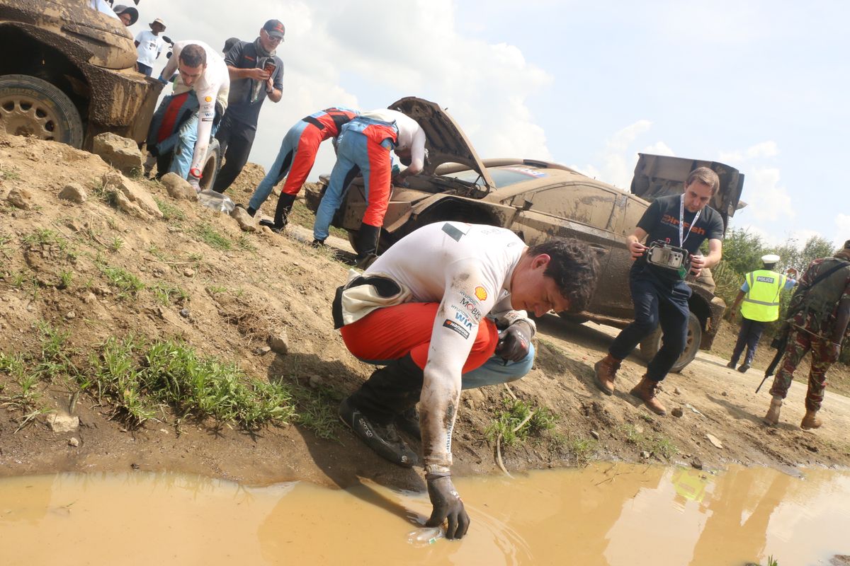 PHOTOS : Hyundai rally drivers resort to muddy roadside pool water for coolant