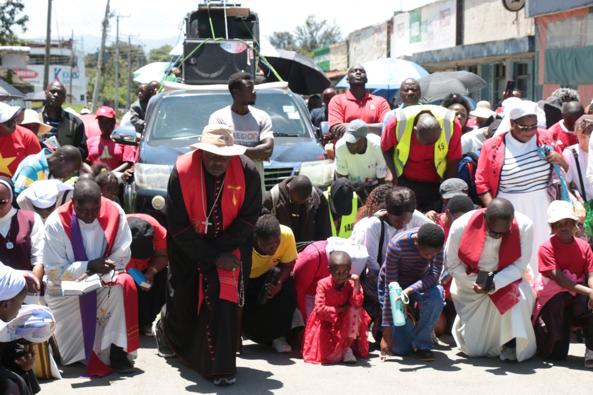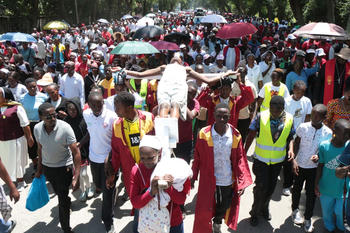 Nakuru Catholic Bishop Cleophas Oseso leads other faithfuls from the Cathedral of Christ the King Church in Nakuru during the commemoration of The Way of the Cross on Good Friday, April