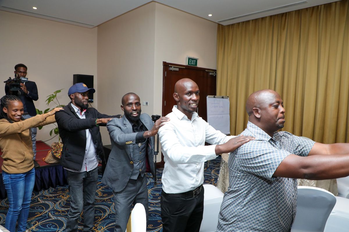 Journalists dance during the Nakuru Journalists Association's annual gala, held at the Sarova Woodlands on December 5, 2025.