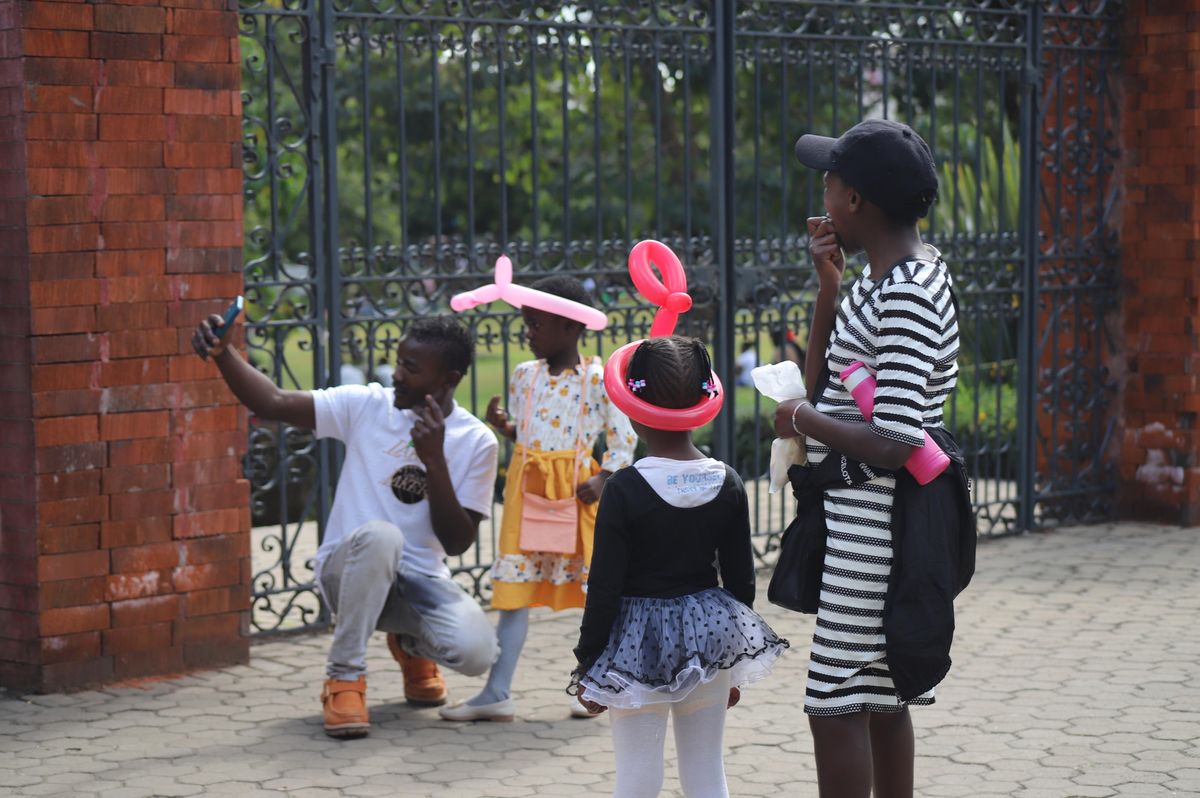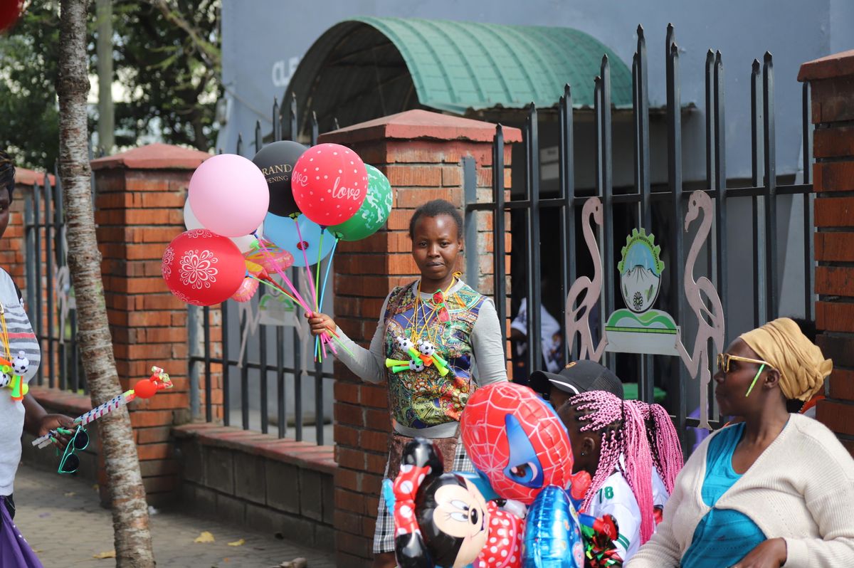 A trader sells balloons along Kenyatta Avenue, where large numbers of families have gathered to celebrate Christmas Day.