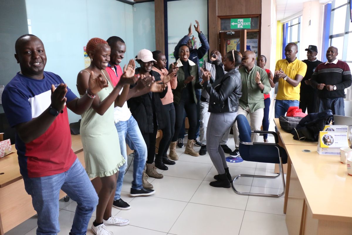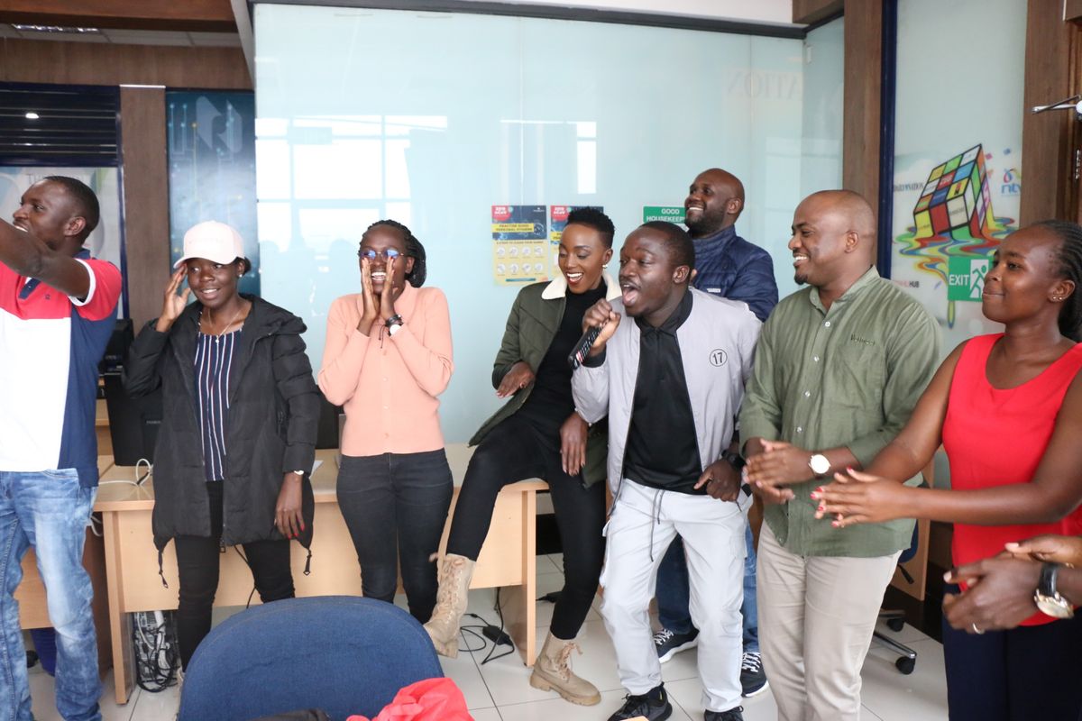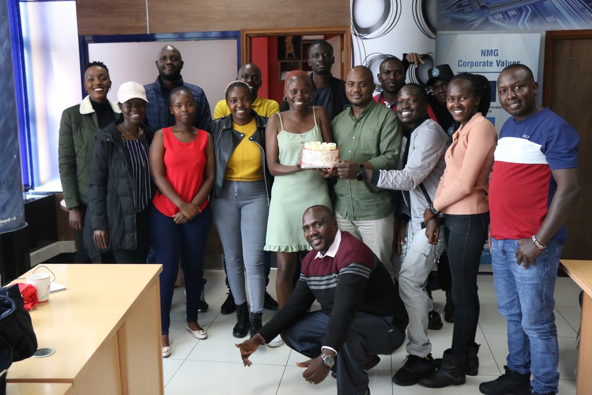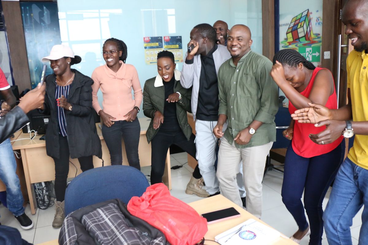Nation Media Group journalists in Nakuru office dance in celebration of Mtaa Wangu's two year milestone.
