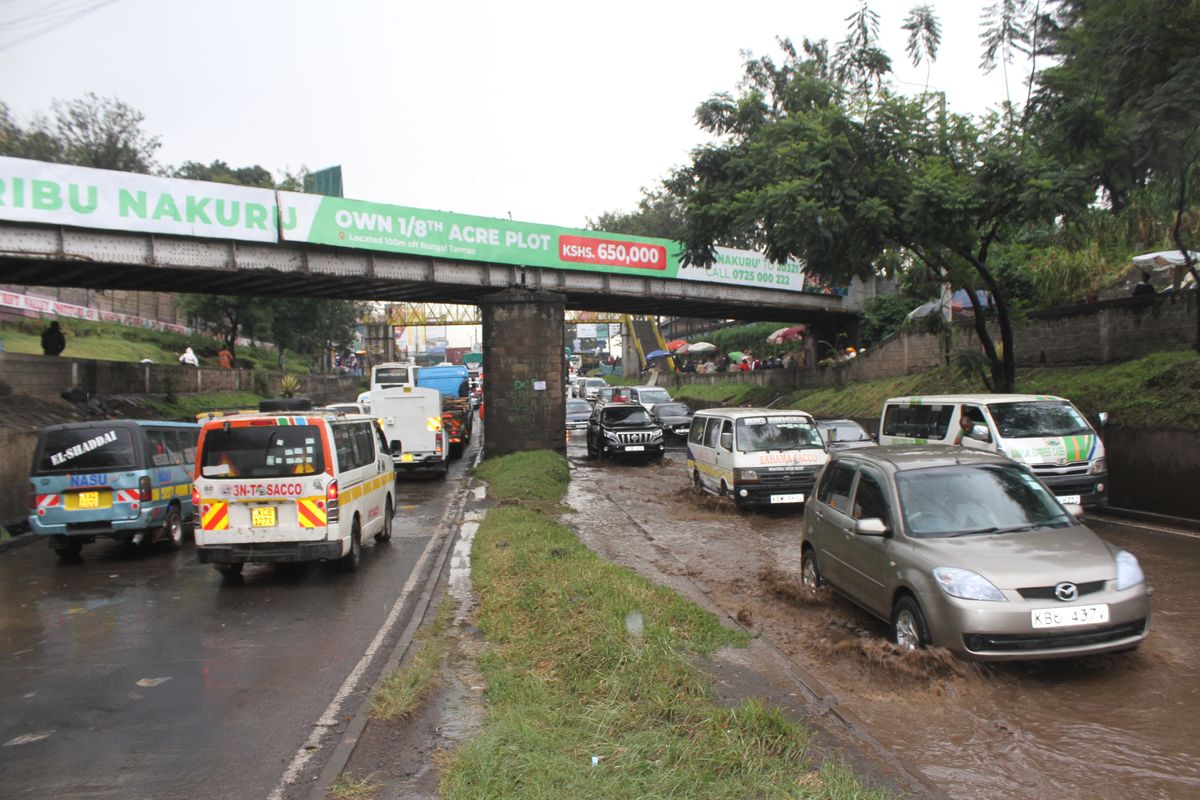 Vehicles navigate a flooded section of the road from Nakuru city at Gate Iguru on September 2,2025.